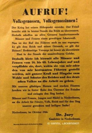 Aufruf des Gauleiters von Niederdonau Dr. Jury zur Bildung des Volkssturmes.